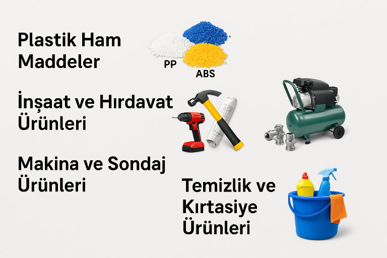 Plastik Ham Maddeler İnşaat ve Hırdavat Ürünleri Makina ve Sondaj Ürünleri Temizlik ve Kırtasiye Ürünleri